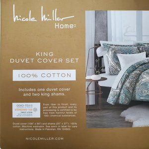 Nicole Miller Floral Medallion Paisley King 3 Pc 100% Cotton Duvet Cover Set