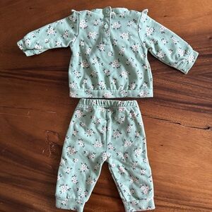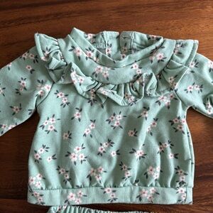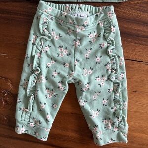 Adorable Nicole Miller baby outfit with floral print and ruffle details. Soft and comfortable for your little one, fleece interior. Size 0-3M, excellent like new condition, no stains.