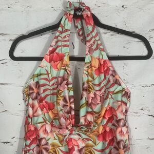 Nicole Miller Floral One Piece Swimsuit XL Halter Ruched Tropical Beach Pool