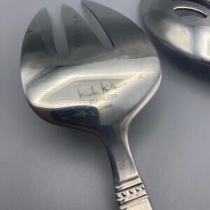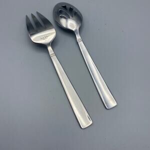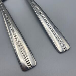 Nicole Miller GREEN TEA Serving Fork Spoon 2pcs Beaded Stainless Flatware