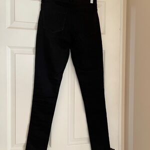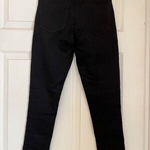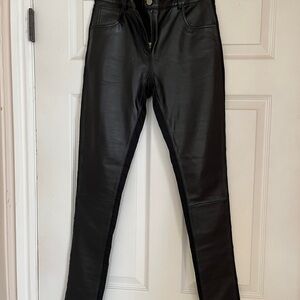 Sleek genuine leather, black straight leg pants in the front and stretch trouser material in the back for a very flattering (and comfortable) fit. Perfect for any occasion.