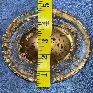 Preowned Nicole Miller Gold Flake Large Bathroom Soap Dish Clear Lucite Resin Oval Shape. Overall Great Condition With A Few Minor Surface Scratches. Not Noticeable Unless Really Looking Gorgeous Them. No Chips Or Cracks. Smoke Free Home. #nicolemiller #goldflakes #soapdish