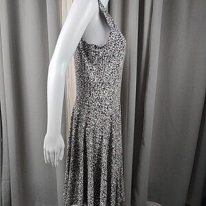 Nicole Miller Green, Peach, Black, White Patterned Midi Dress Size Large