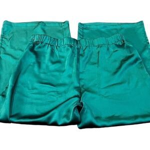 Nicole Miller Green Satin Wide Leg Palazzo Capris Size Large