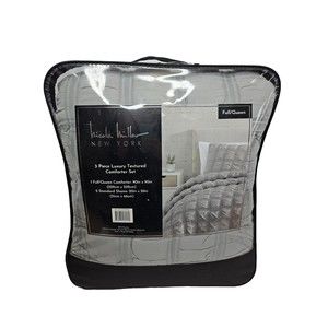 Nicole Miller Grey Full/Queen 3 Piece Luxury Textured Comforter Set, New