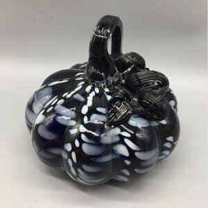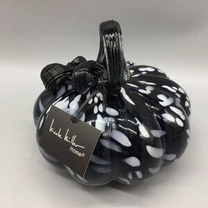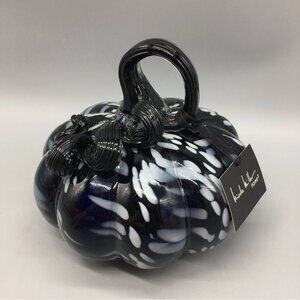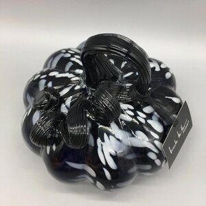 Nicole Miller Hand Blown Art Glass Pumpkin Black White Spots Designer Fall Decor