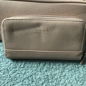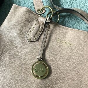 Nicole Miller Tote in pretty Mauve color. Matching wallet. Measures 15” wide by 10” tall. Gently used.