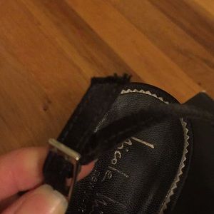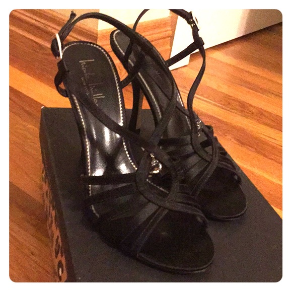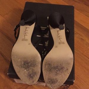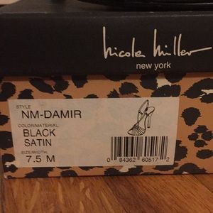 Nicole Miller Black Satin Heels w/decorative hanging stone