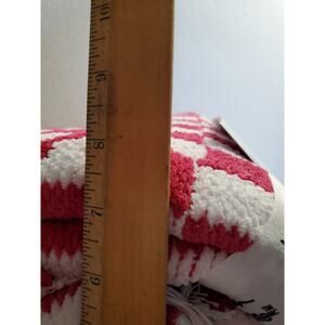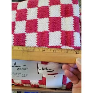 Nicole Miller Home Chenille Throw Blanket Pink White Checkered Fringe 50x70 New