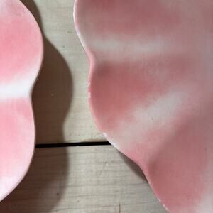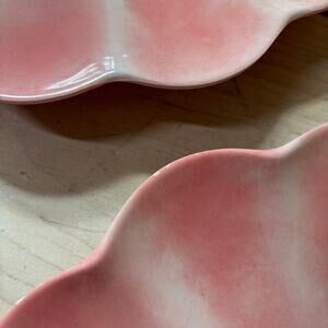 Nicole Miller Home NWOT Pink Scalloped Dinner Plates Set of 3 Some Flaws (see pictures) Never used, purchased on clearance, I assume because of flaws