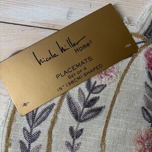 Nicole Miller Home NWT Floral Embroidered Pumpkin Shaped Placemats (4)