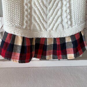 Nicole Miller Home White Cable Knit Dog Sweater with Plaid Hem Skirt