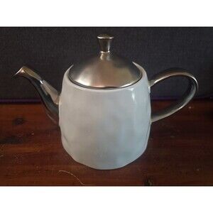 Nicole Miller Home White Silver Teapot Hammered Texture Farmhouse Shabby Chic