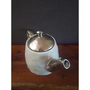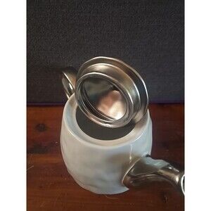 The Nicole Miller Home White Silver Teapot with a Hammered Texture is a charming addition to any farmhouse or shabby chic kitchen. Made of porcelain, this teapot features a white and silver color with a hammered textured solid pattern, adding a unique touch to your tea set. With a capacity for 4 cups and a stylish design that is perfect for all occasions, this teapot is both practical and elegant, making it a perfect choice for your home.