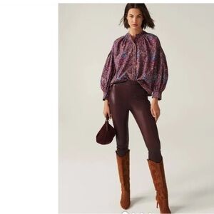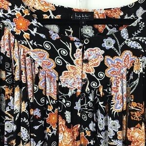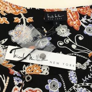 Nicole Miller India print, rayon, puff sleeve, boho blouse. NWT small oversized. Rust, white and periwinkle flowers set on a black background. Beautiful flowy blouse. Could fit a range of sizes. See measurements.