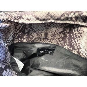 Nicole Miller Insulated Lunch Bag Cooler Tote Gray Silver Snakeskin 10" x 6" x 9". Very Clean. Super nice lunch bag. Inside insulation is fully intact accept one tiny spot near corner of zipper. Features front zipper pocket, 2 side compartments(one on each side of handles), zippered main insulated cold area with double handles. Item in great gently used condition. No known rips, tears, holes, stains or defects other than mentioned above.