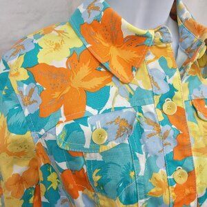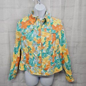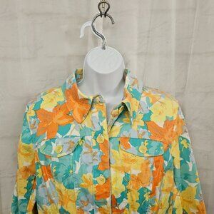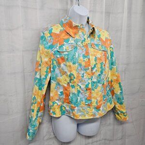 Nicole Miller Jacket Denim Floral Tropical Festival Casual Colorful 12
