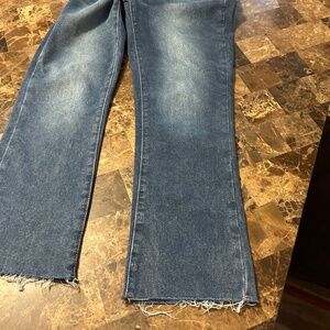 They feature a high-rise fit with a raw hem and ankle kick boot style, perfect for wearing in all seasons.