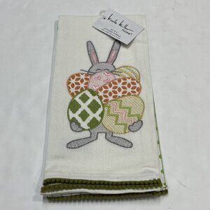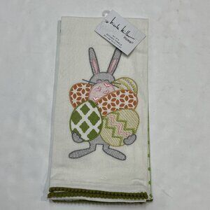 Nicole Miller Kitchen Tea Towel Easter Embroidered Eggs Bunny Tassel Spring 2P