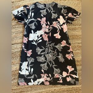 Nicole Miller Large Black Tropical Floral Linen Blend Short Sleeve Shift Dress