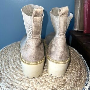 Knit Sock Ankle Bootie with Faux Suede at Heel. Chunky Lug Sole with a 2.5” Wedge Heel. Great Condition 🚭