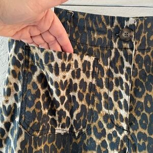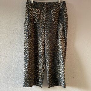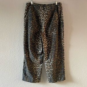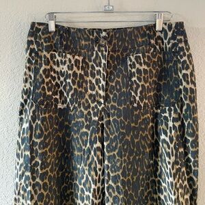 Description: great pair of wide leg canvas-style pants in leopard print with sailor-style front pockets