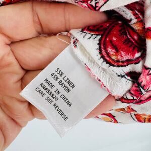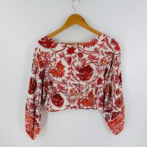 Nicole Miller Linen Blend Blouse Small Boho Floral Print Long Sleeve Top Small