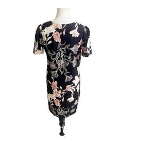 Nicole Miller Linen Blend Short Sleeve Sheath Dress Black Floral Size Small