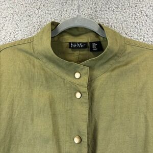 Nicole Miller Linen Jacket Medium Lightweight Lagenlook Minimalist Olive Green