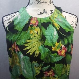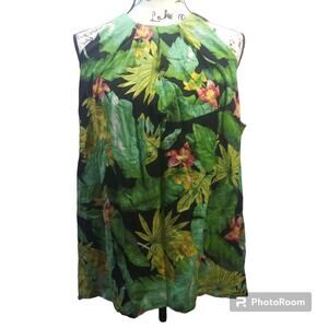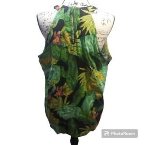 Nicole Miller Linen Tropical Print Sleeveless Casual Vacation Top Size L