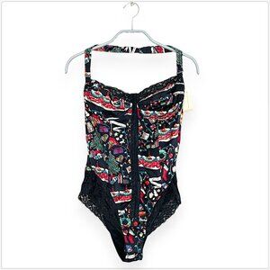 Nicole Miller Lingerie Vintage Christmas Holiday Teddy Bodysuit Silk NWT New 36B