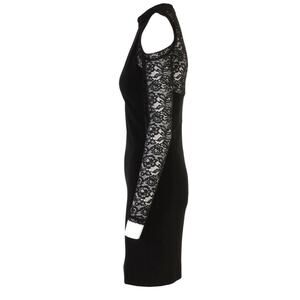 Nicole Miller Little Black Dress Size 10 Lace Sleeve Bodycon Cold Shoulder Holiday