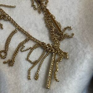 Long gold tone chain fringe necklace by Nicole Miller