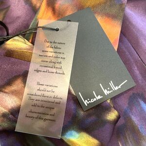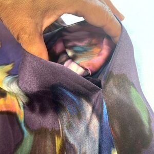 Romantic and bold Nicole Miller floral maxi dress in deep purple abstract tones—perfect for fall weddings, wine nights, or festival weekends styled with a chunky knit or leather jacket. Designed with fixed straps, side pockets, and a built-in elastic shelf bra for support and comfort.