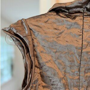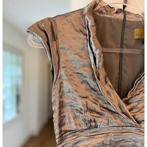 Nicole Miller Metallic Ruched Sheath Dress Petite 10P Silver Cocktail