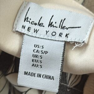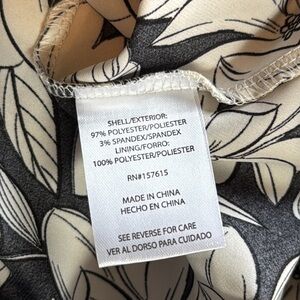 Elegant midi dress with a floral design. Features a classic black and white palette. Ideal for any occasion.