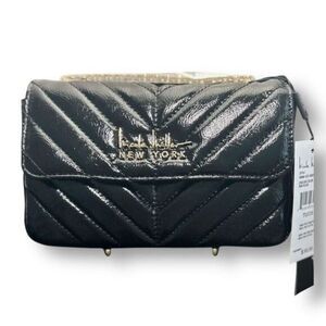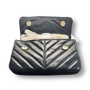 Nicole Miller NWT Black Quilted Crossbody Bag Chevron Gold Chain Strap Purse