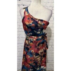 Nicole Miller NY Floral Silky Split Leg One Shoulder Maxi Dress Belted Size 6