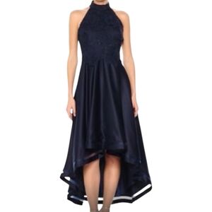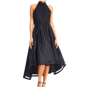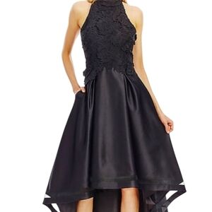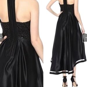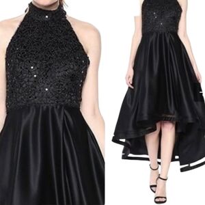 Nicole Miller NY Women's 3D Sequin Mock Neck T Back Black hi-Low Dress Sz 12