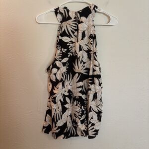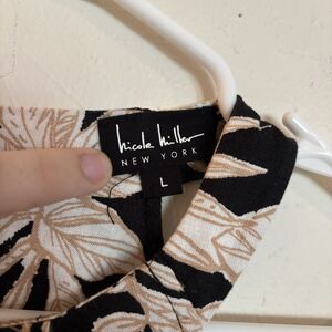 Nicole Miller NY Women's Large Sleeveless Linen Top Tank Beige Black High Neck