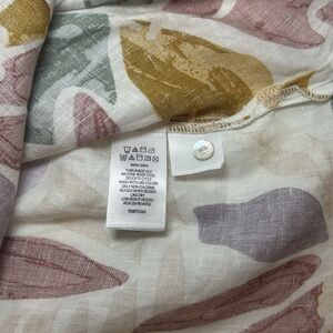 Nicole Miller NY Women's Linen Blouse Floral Short Sleeve Button Front Sz M Top