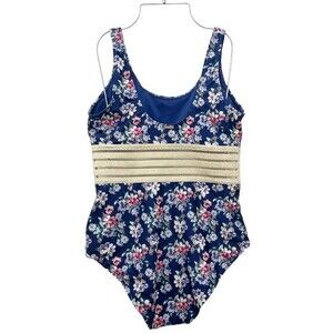 Nicole Miller Navy Floral Shimmer-Band One-Piece Swimsuit Women’s Size Large