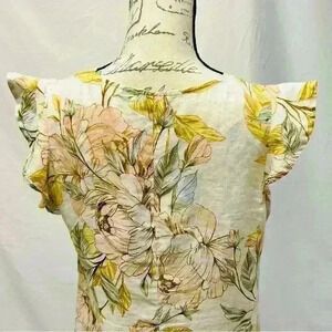 Nicole Miller New York 100% Linen Pastel Floral Shift Dress sz S