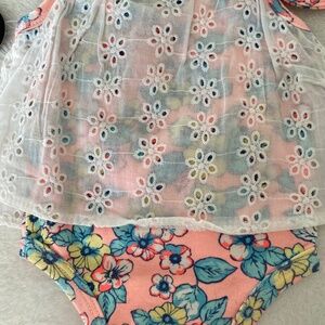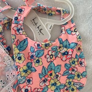 Nicole Miller New York 3 Pc Skirted Creeper Set One-Piece, Bib & Bow 0-3M NWT