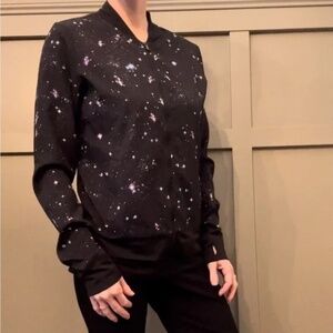 Nicole Miller New York Active Galaxy Star Celestial Printed Full Zip Jacket Med
