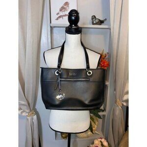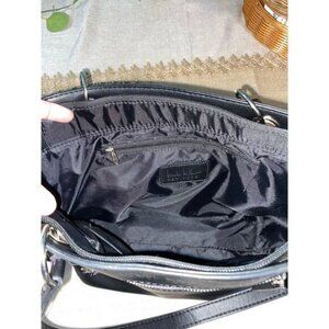 Nicole Miller New York Black W/ Silver Logo Zipper Pockets Top Handles Handbag