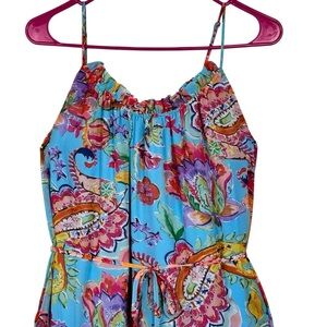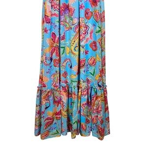 Nicole Miller New York Blue & Pink Floral Paisley Ruffled Tiered Sundress