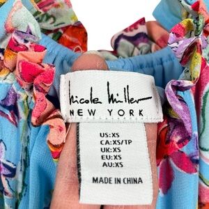 Nicole Miller New York Blue & Pink Ruffled Tiered Sundress Size XS