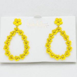 Nicole Miller Boho faux leather teardrop floral earrings in yellow. Post earrings. Size is approx. 3" x 1.75". New in box.