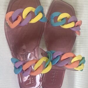 Nicole Miller New York Cherrie Pink Slip-on Sandal Two Band Color Chain Size 7
